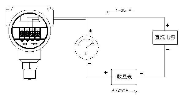 ◆在變送器沒有液體的情況下,調節(jié)零點電阻器,使之輸出電流4 m A,